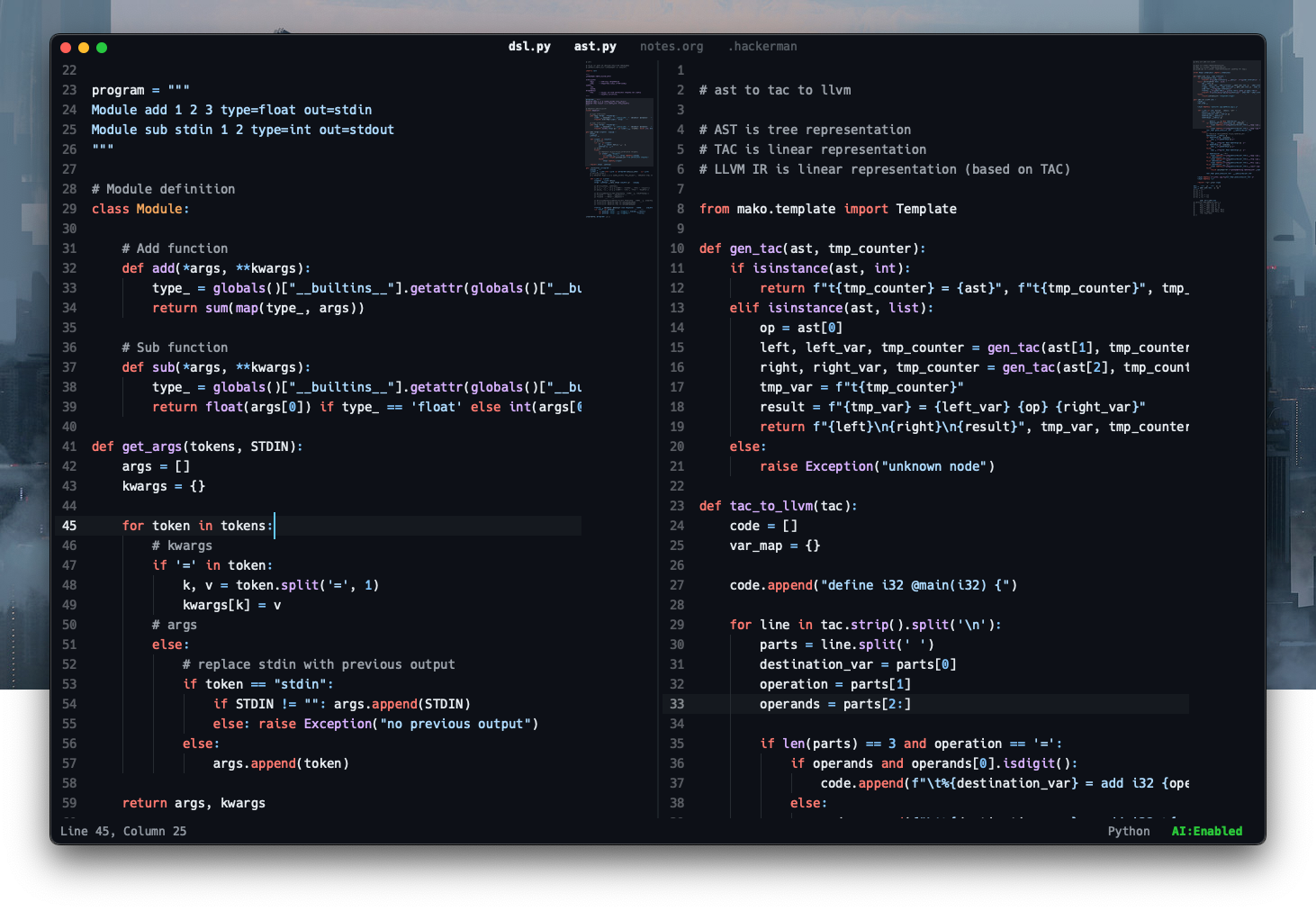 Hackerman Text ships with built-in, native-level lexers tuned for speed. There are currently no plans to add heavier, language-aware tooling.